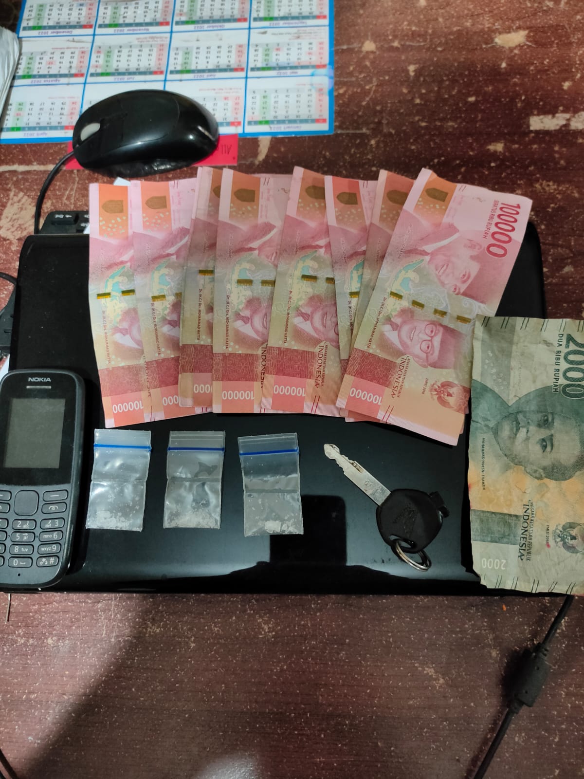 Dari tangan pelaku ditemukan satu poket sabu-sabu di kantong celana jeans yang dikenakannya, kemudian dua poket sabu-sabu yang disembunyikan dalam celana dalam.