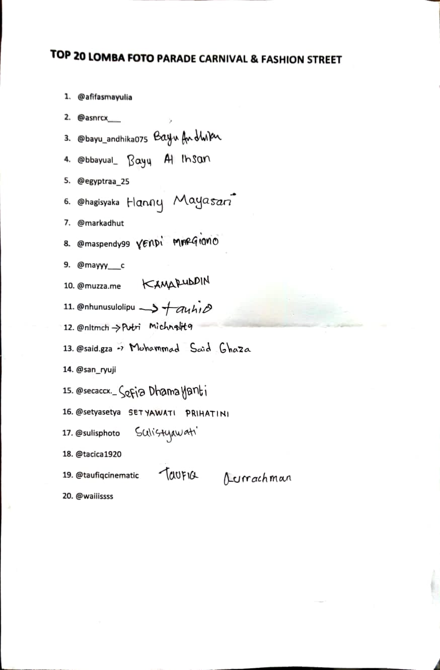 Panitia lomba foto dan video juga telah mengumumkan masing-masing juaranya. Baik lomba foto maupun video reels, masing-masing membesut 20 pemenang.