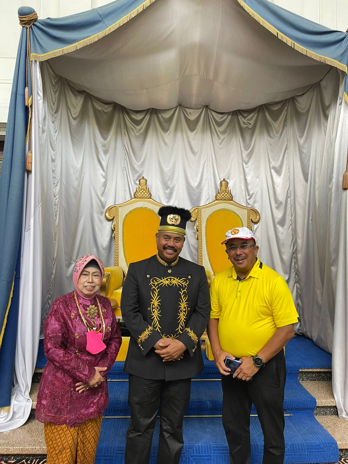 Berfoto dengan Bupati Kukar Edi Damansyah dan mantan anggota DPRD Kaltim Hj Encik Widyani S membelakangi kursi Sultan. Ft Rizal