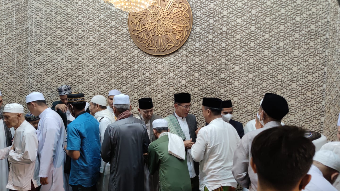 Tampak seluruh jemaah antusias untuk mengantri bermaafan dengan Isran Noor, Rusmadi Wongso dan juga jajaran lainnya. (RYAN)