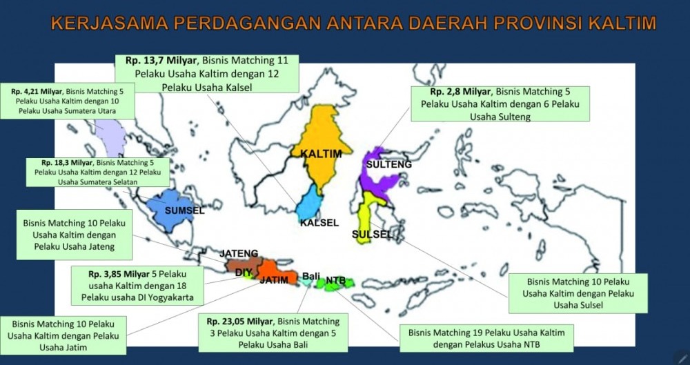 Hingga saat ini, telah terbentuk forum dagang antara Kaltim dengan beberapa provinsi di Indonesia seperti Forum Dagang Kaltim-Jatim yang disepakati pada tahun 2022 lalu, dengan nilai transaksi mencapai Rp 75 miliar meliputi produk UMKM, susu, produk pertanian seperti beras, pisang cavendis, cengkih dan kopi.