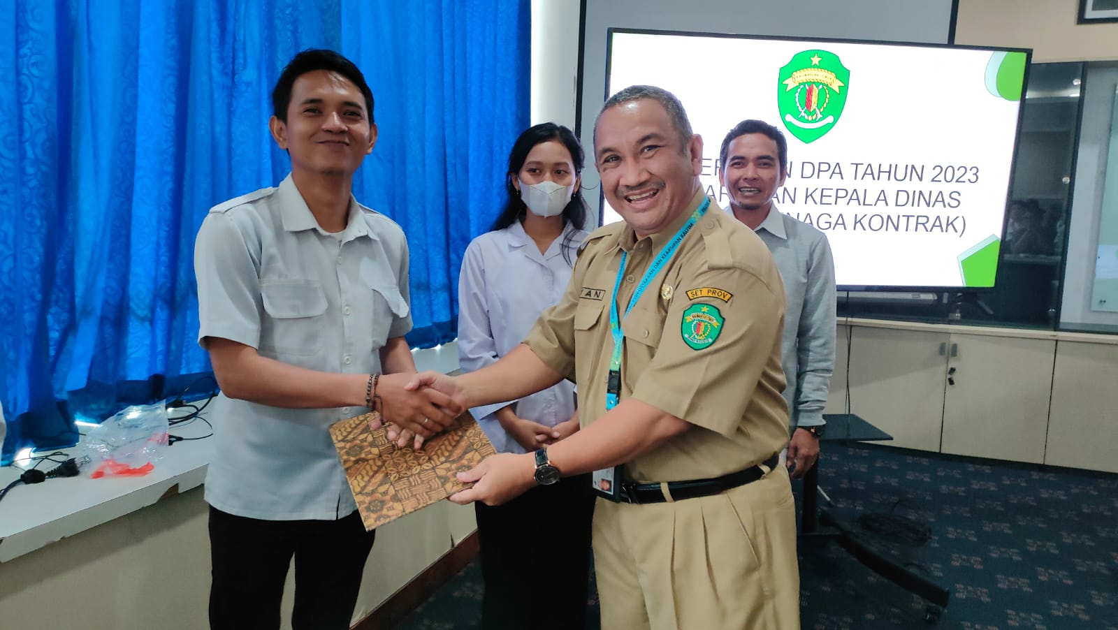 FOTO: Kepala DPK Kaltim M Syafranuddin ketika menyerahkan SK Pegawai Non ASN di lingkungan DPK Kaltim, Selasa (3/1/2023). Foto by Dokumen DPK Kaltim