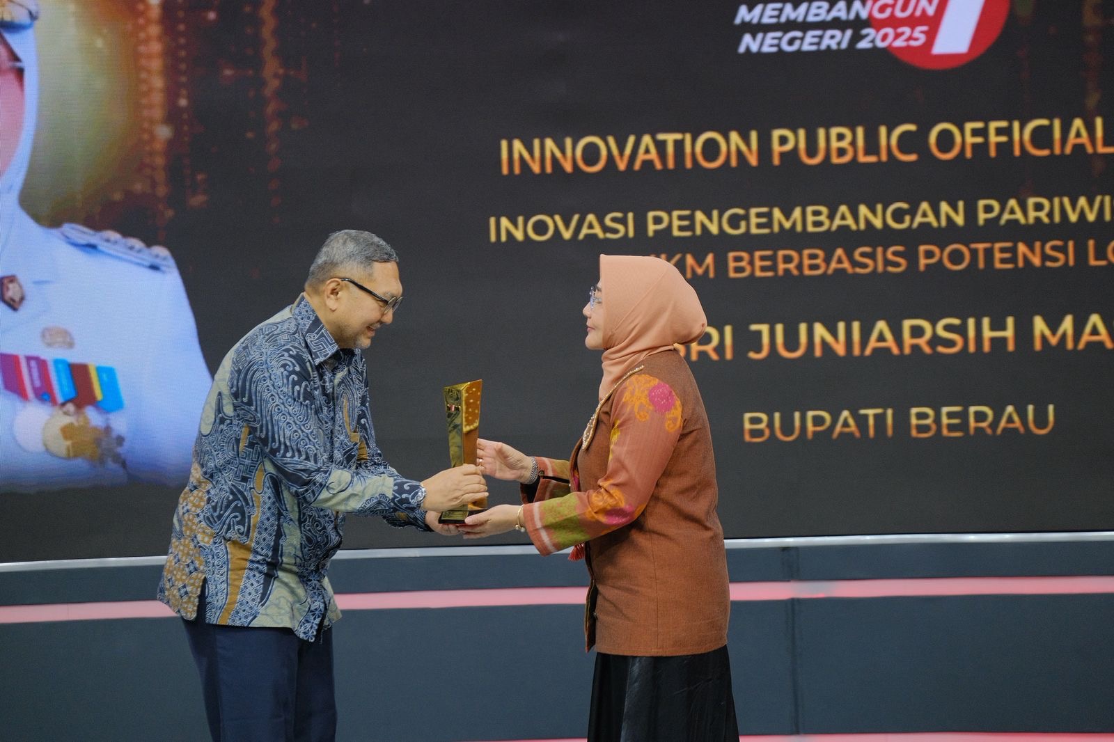 Berau, Busam.ID – Bupati Berau Sri Juniarsih Mas menerima penghargaan Inovasi Membangun Negeri 2025 dari TvOne. Penghargaan sebagai bentuk apresiasi atas komitmen dan terobosan Pemerintah Kabupaten (Pemkab) Berau dalam mendorong percepatan pembangunan, khususnya dalam bidang pengembangan pariwisata dan UMKM berbasis potensi lokal di Bumi Batiwakkal.