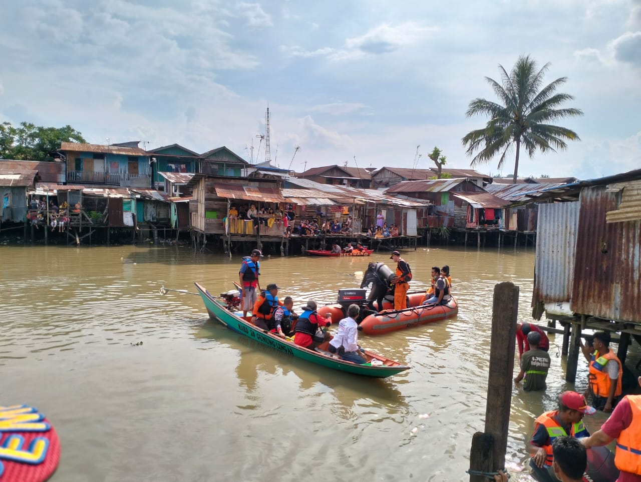 Tim Pencarian dan Pertolongan Balikpapan menerjunkan dua penyelam untuk mencari bocah tenggelam di Sungai Karang Mumus, Sabtu (11/6/2022).